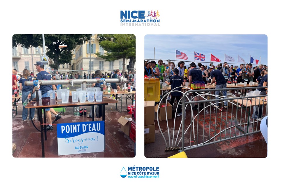 Sur les grandes courses, les points de ravitaillement génèrent souvent une quantité importante de déchets, notamment des gobelets en plastique. Pour répondre à cet enjeu, Eau d’Azur a mis en place un dispositif innovant basé sur une ressource locale, durable et de qualité : l’eau du robinet.